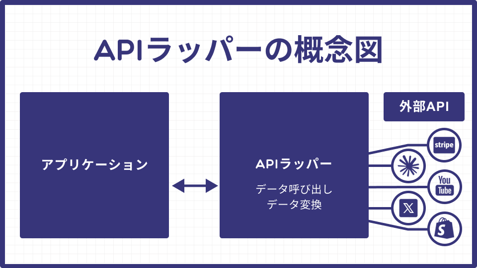 APIラッパーとは、アプリケーションと外部APIの間に挟まる薄い層であり、API呼び出しの複雑さを隠蔽し、使いやすいインタフェースを提供するものです。