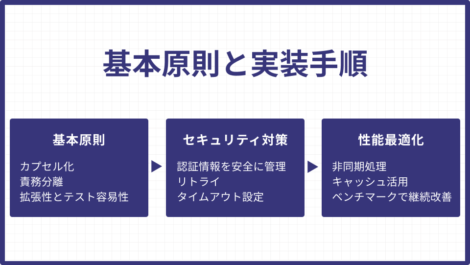 APIラッパーは、外部APIとの連携を簡素化し、保守性・再利用性を高める重要な設計パターンです。